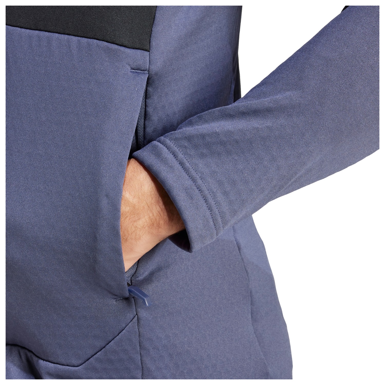 - genomgående blixtlås fram, med hakskydd