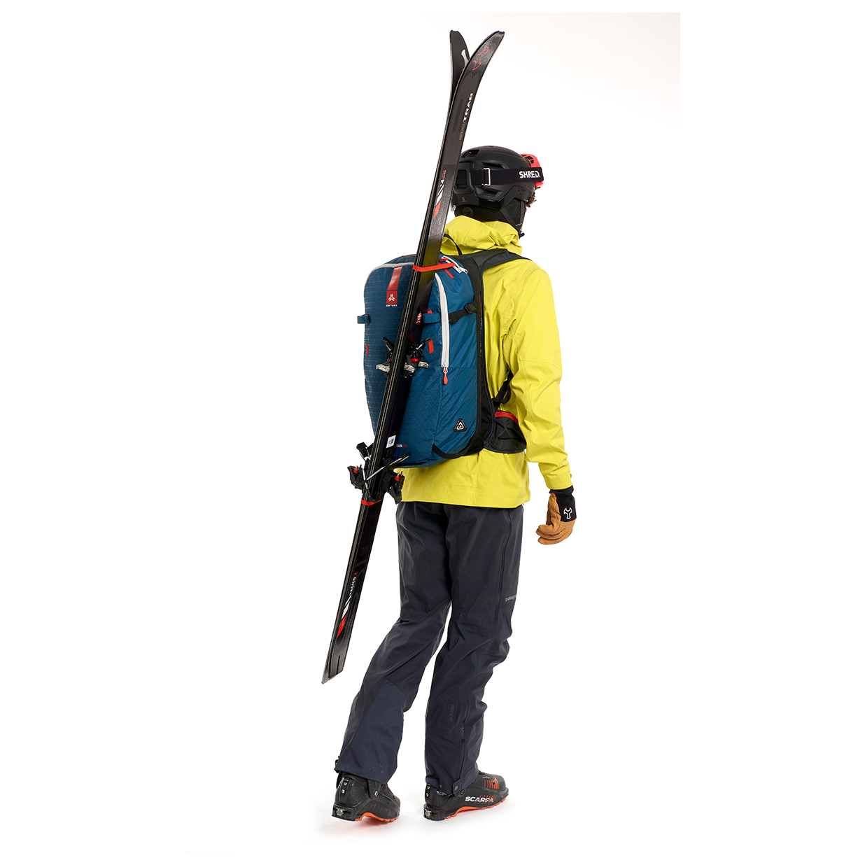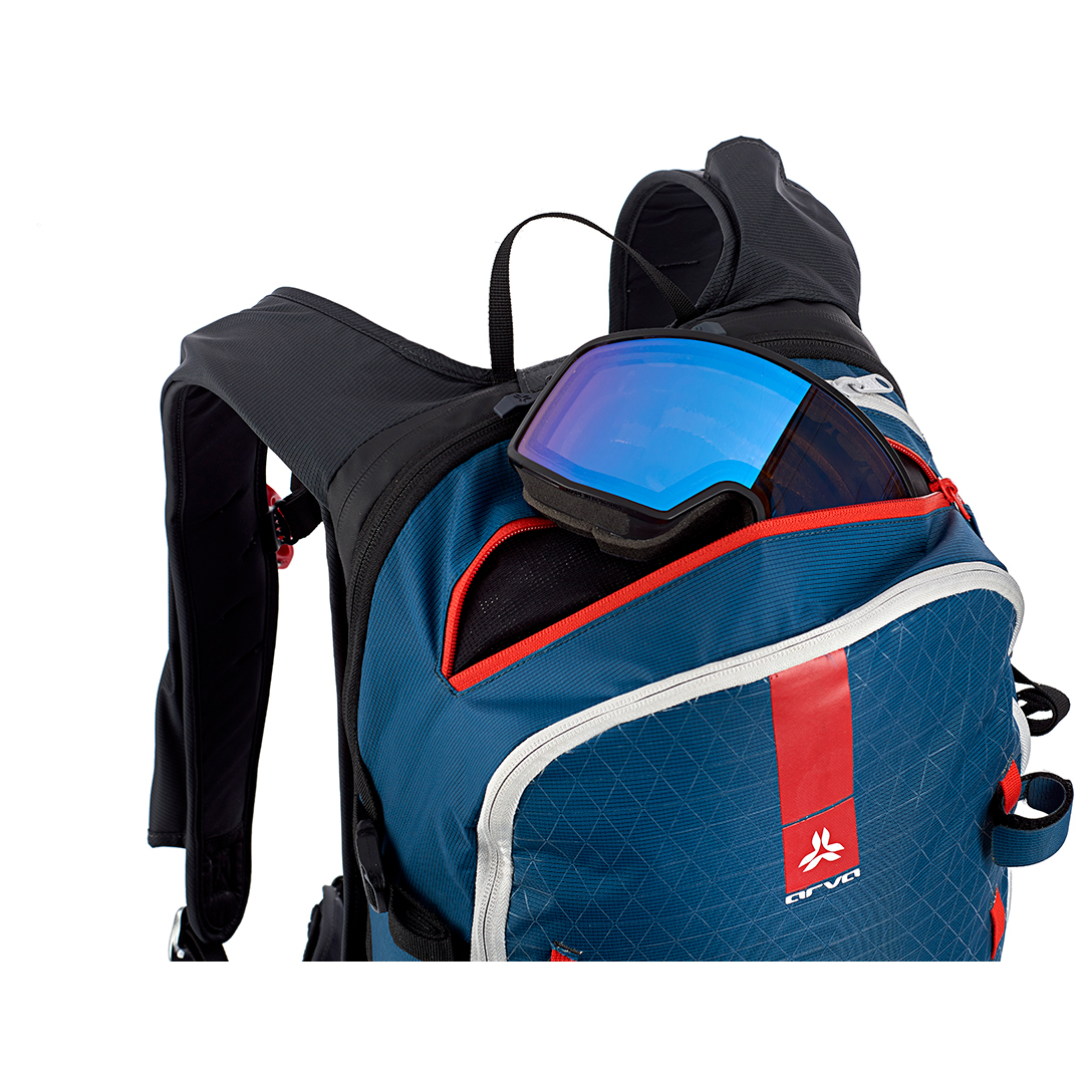 - lavinväska, innerfack, fickor för höftselar, skid-/snowboardhållare, hjälmhållare, isyx-/stavhållare, daisy chain, glasögonfack