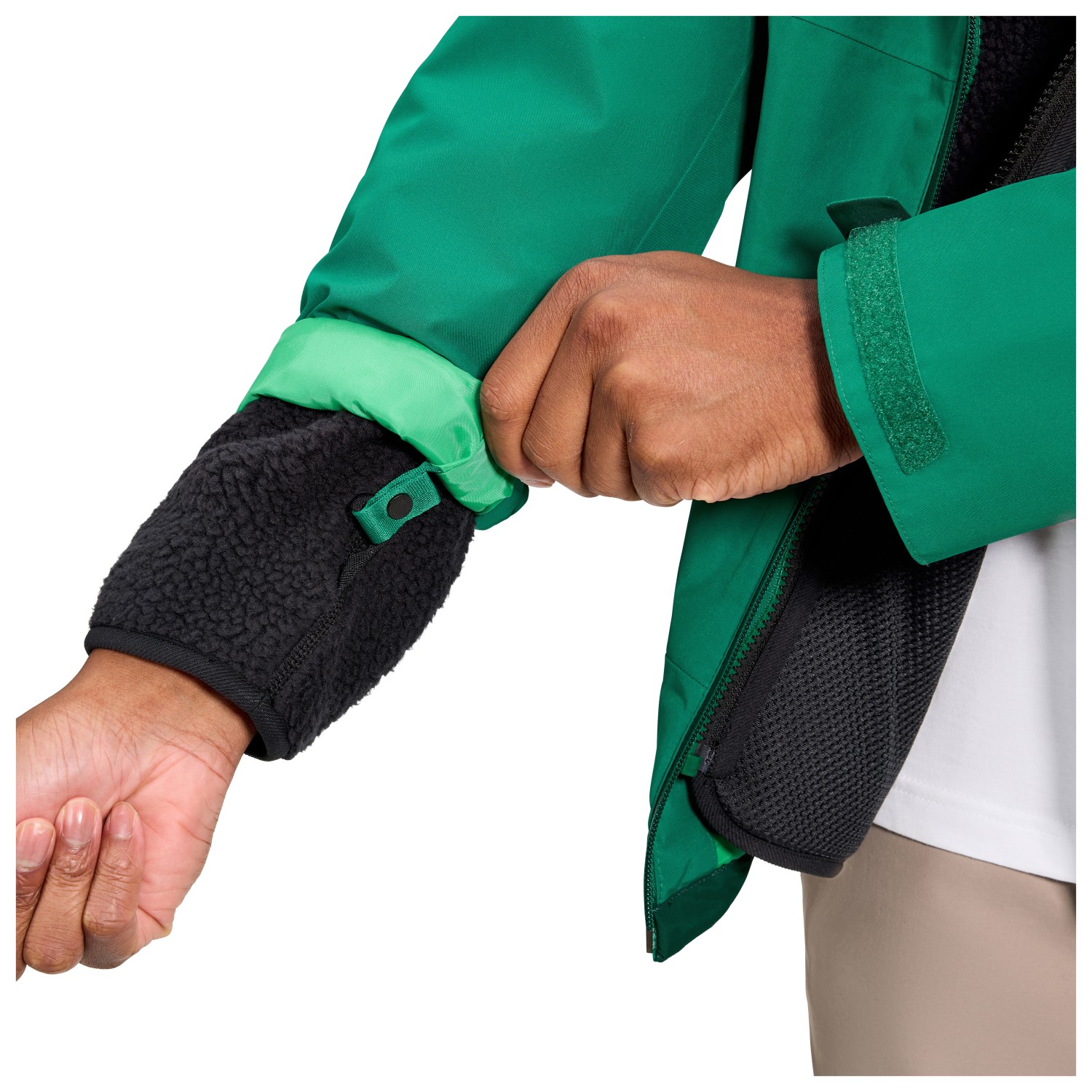 - broderad logotyp, kardborrknäppning på ärmarna, vattenavvisande blixtlås