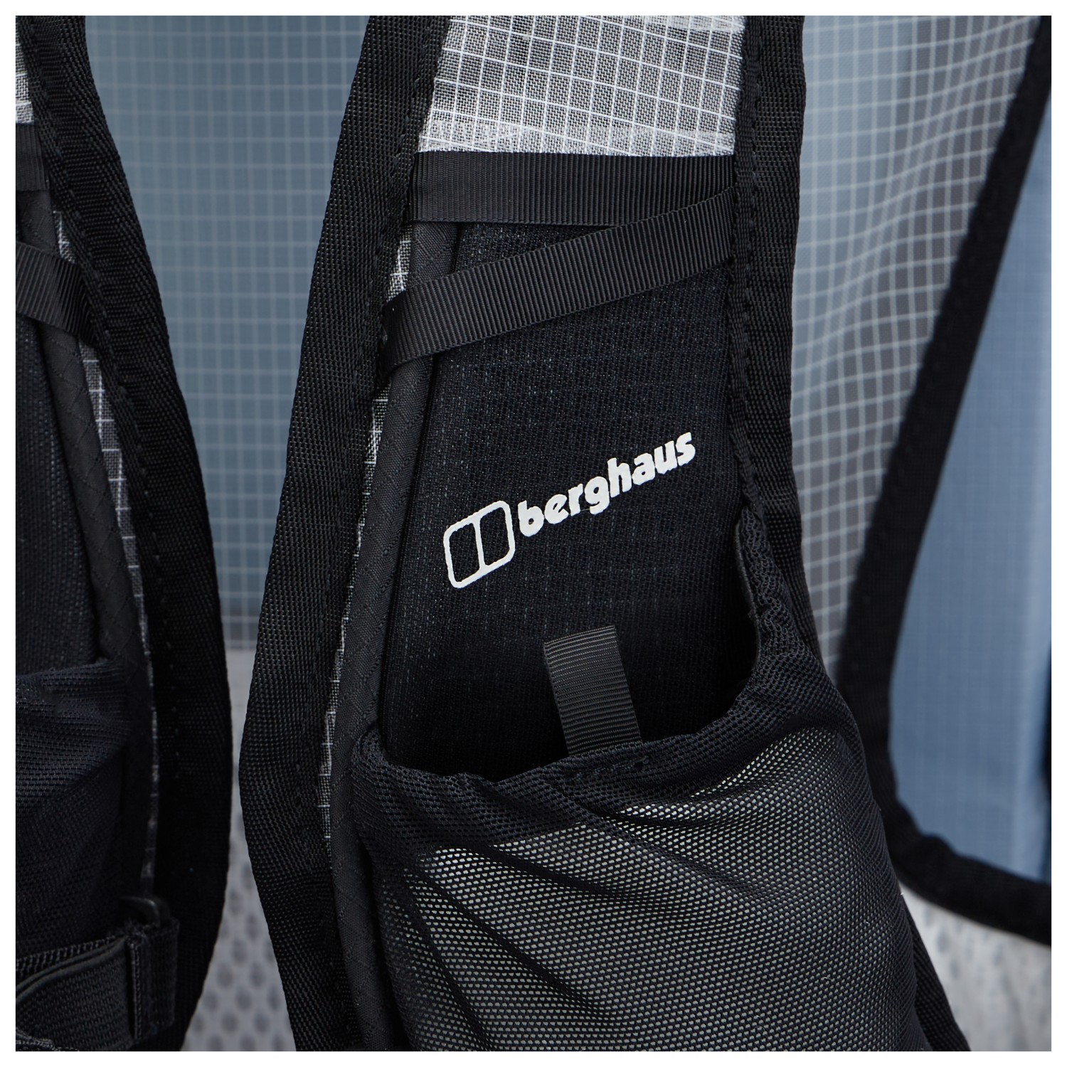 - 2 fickor för höftselar, 2 sidofickor, fäste för trekkingstavar, fack med lock, fack fram, ficka på axelremmen, materialöglor