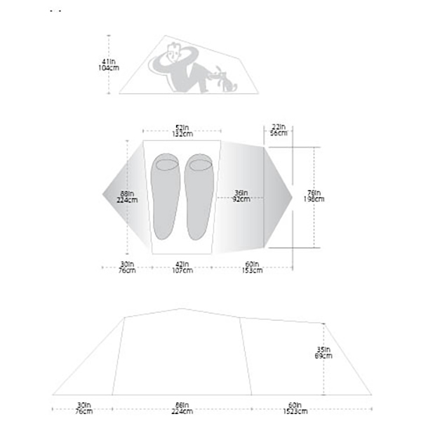 - Fly and floor: Si-/ PU-coated high-tenacity nylon ripstop; Inner tent: nylon ripstop and polyester mesh; PU-taped seams