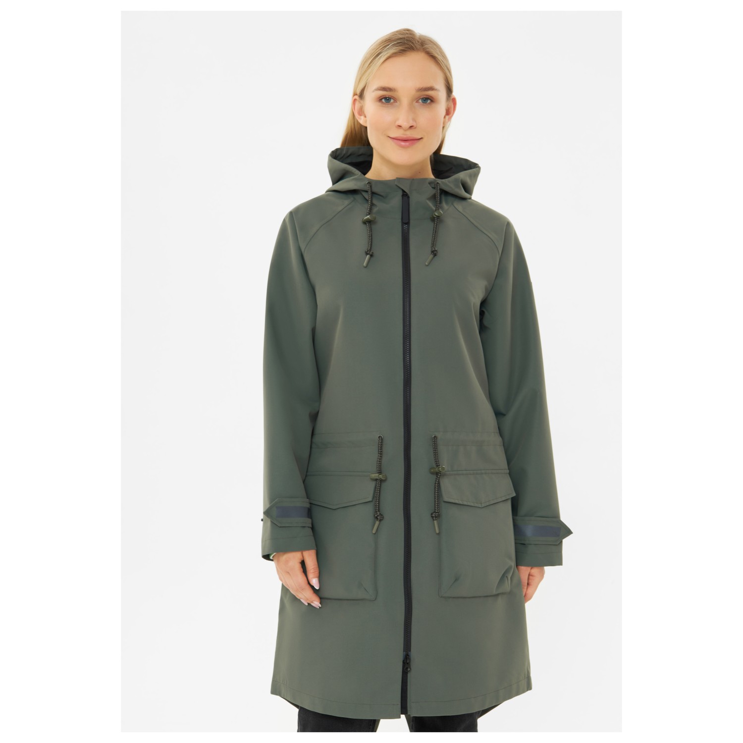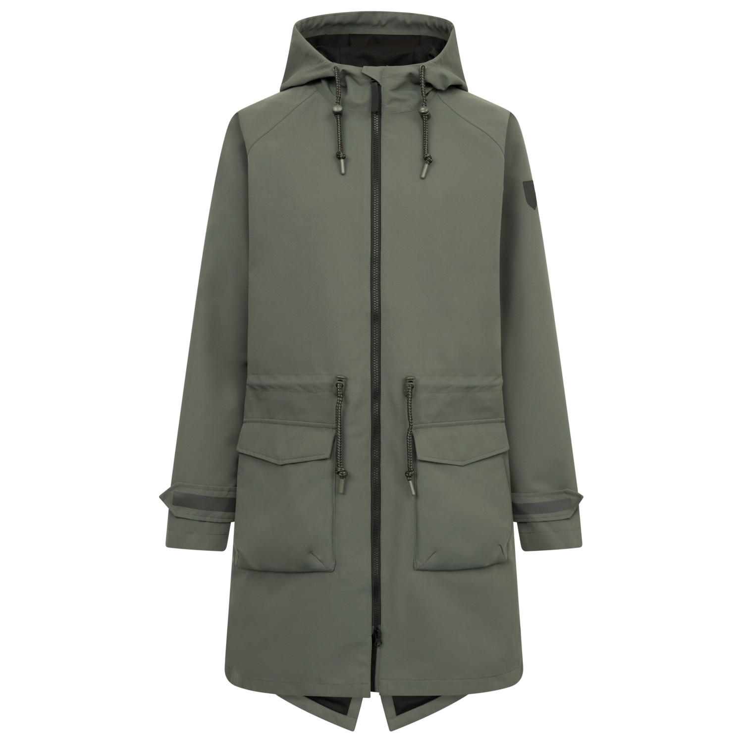 - kardborrknäppning på ärmarna, reflekterande detaljer, längre baktill