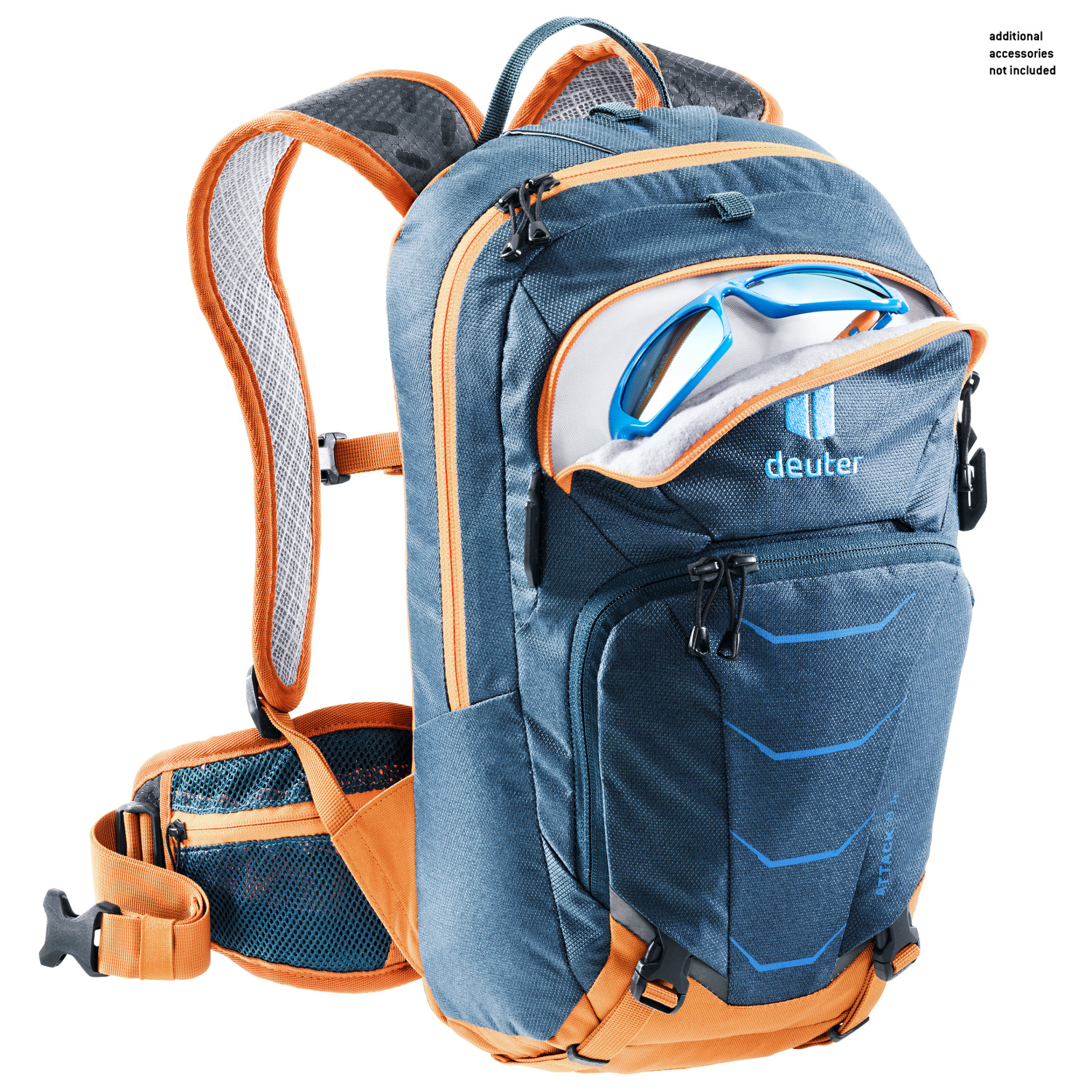 - glasögonfack, glasögonhållare, fack fram, fickor för höftselar, hållare för baklampa, öglor för hjälmhållare, verktygsfack