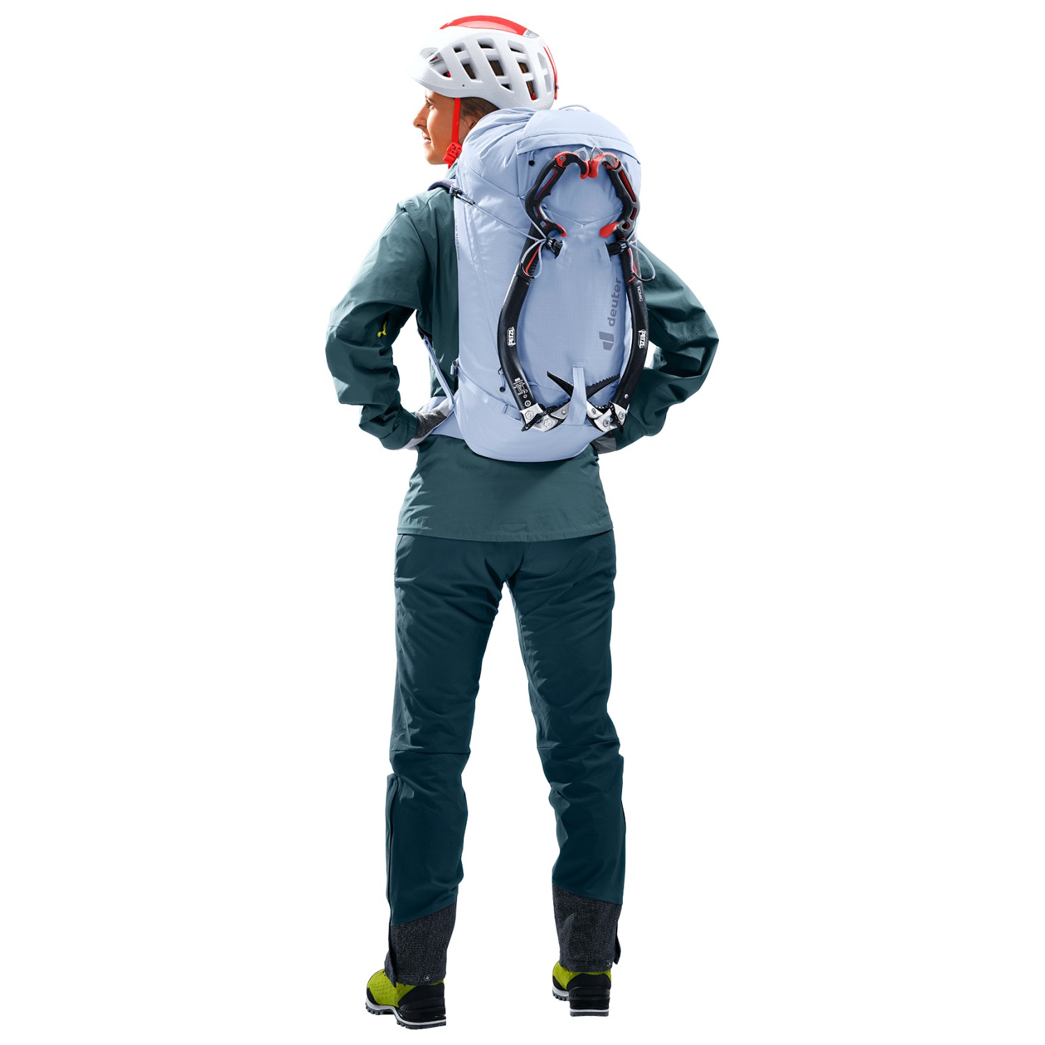 - fästremmar på framsidan, glasögonhållare, fack för våt tvätt, framficka med blixtlås, nyckelclip, hållare för lina, hållare för smartphone, integrerat hjälmnät