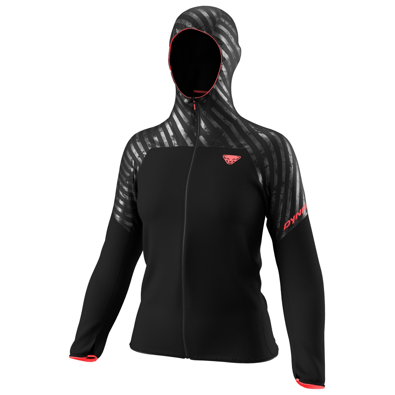 - tumhål, elastiska ärmmuddar, elastisk linning, kan förvaras i sin egen ficka, tryckt logotyp, reflekterande detaljer