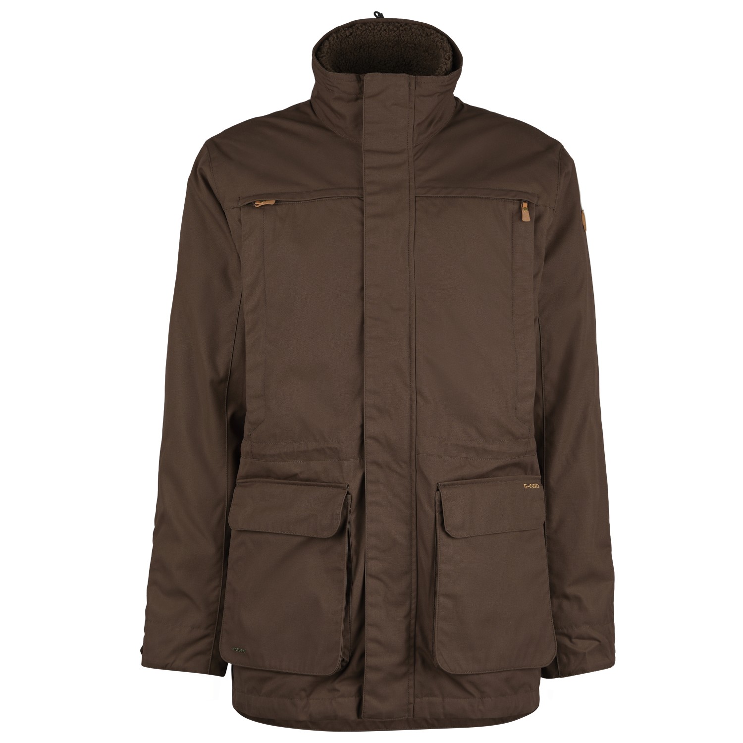 - 2 dubbla framfickor, 2 bröstfickor med blixtlås, 2 sidofickor med blixtlås