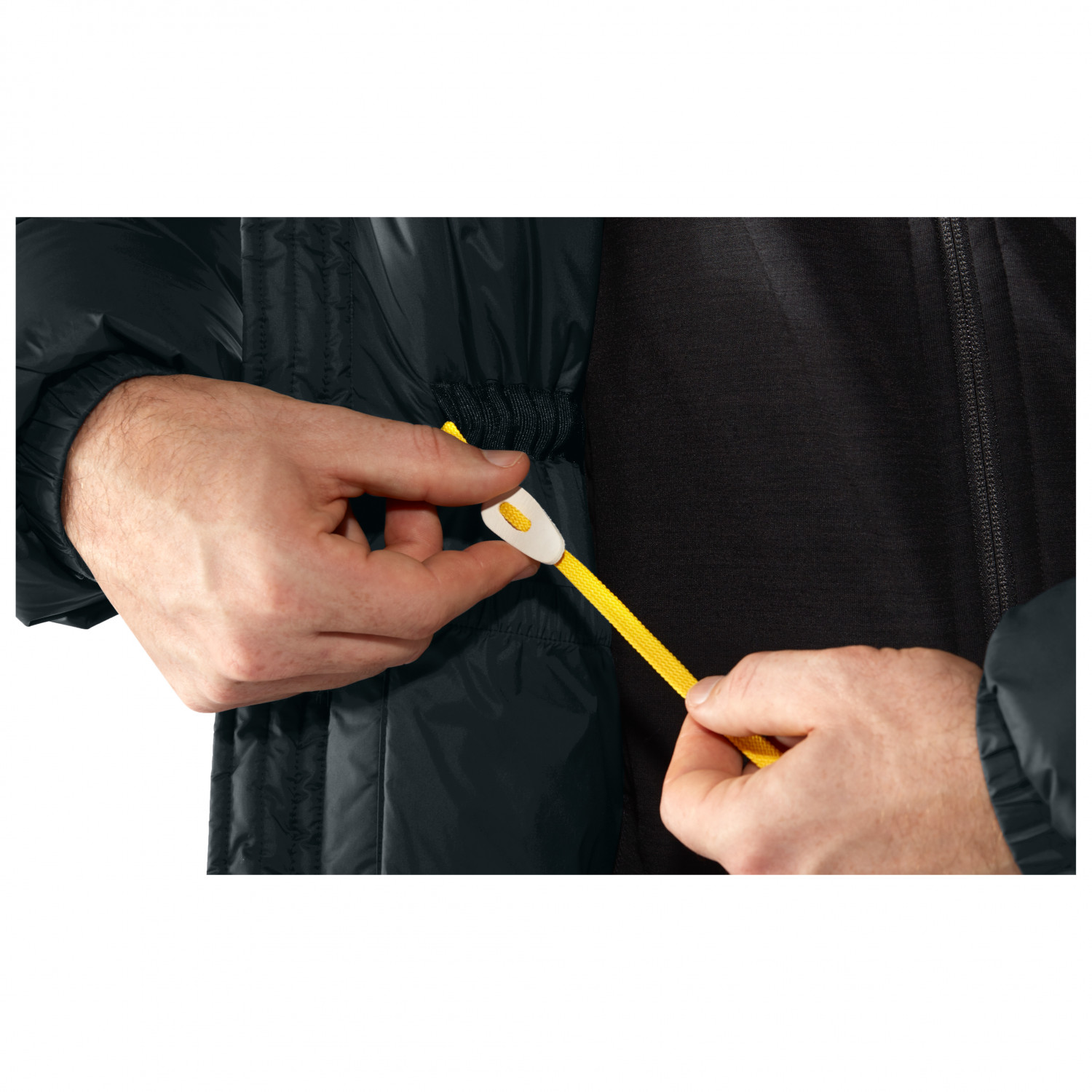 - elastiska ärmmuddar, dragsko i nederkant, längre baktill, reglerbara ärmmuddar