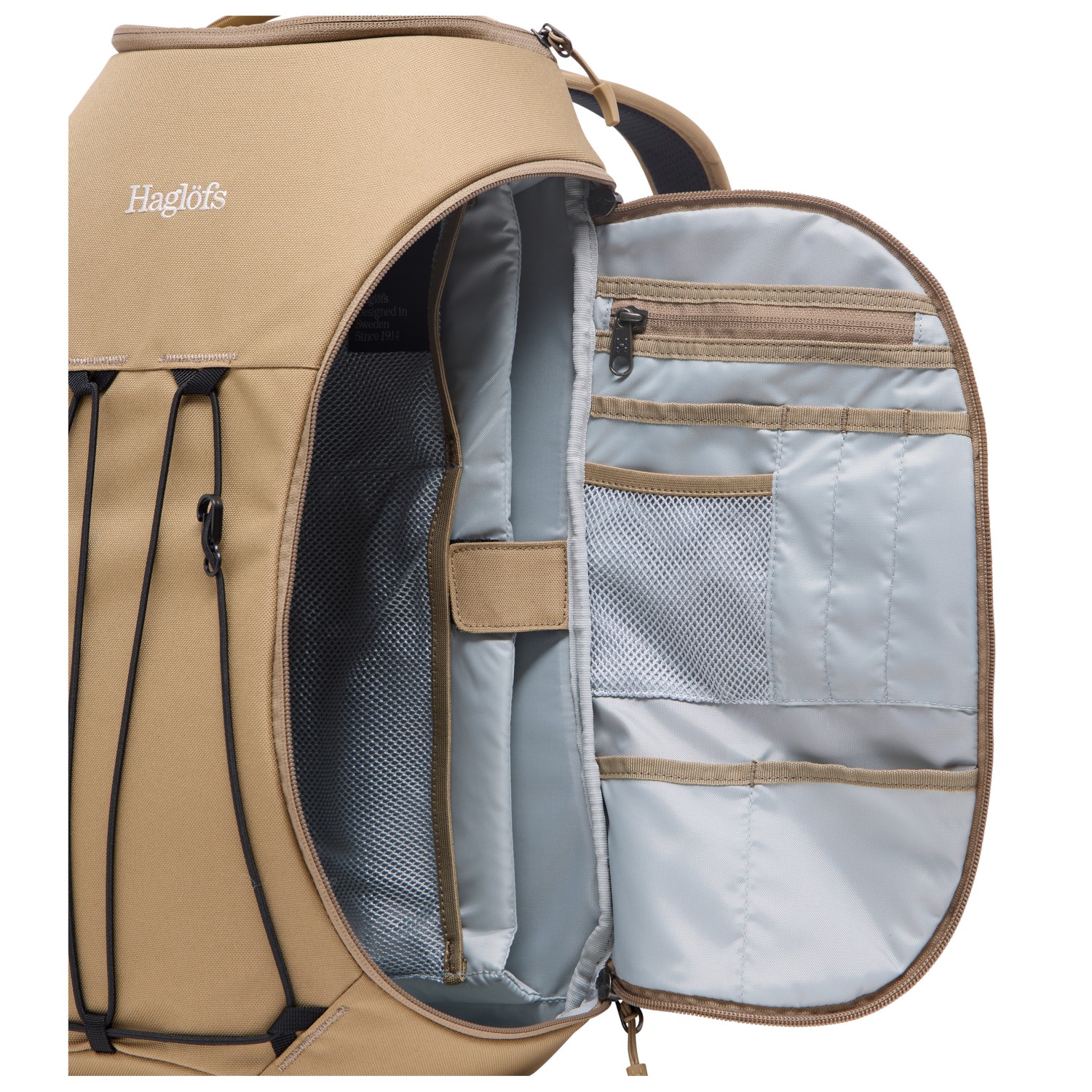 - hållare för bungeelina, internt förvaringsfack, innerficka med blixtlås, nyckelclip, sidoficka