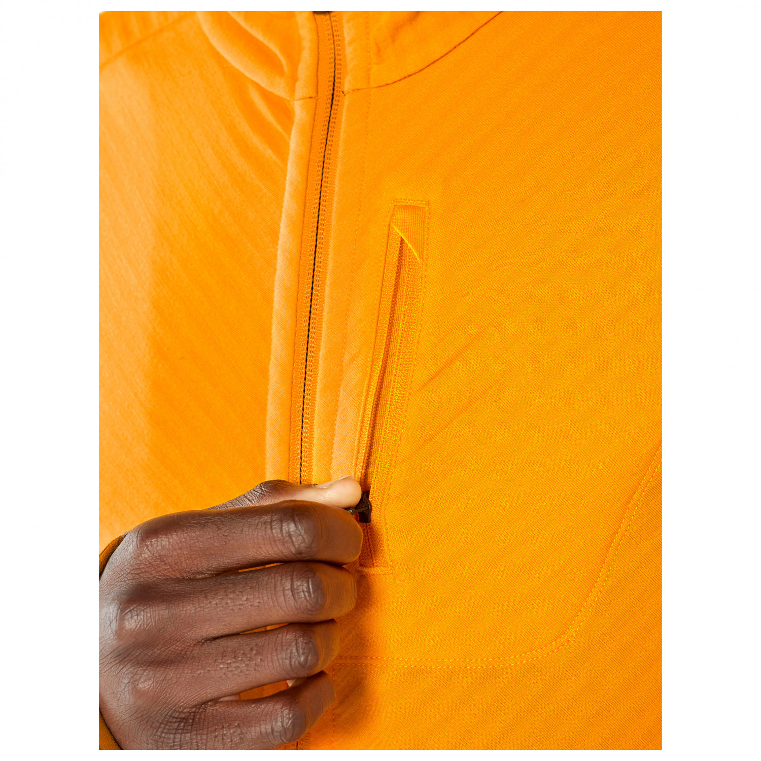 - genomgående blixtlås fram, med hakskydd