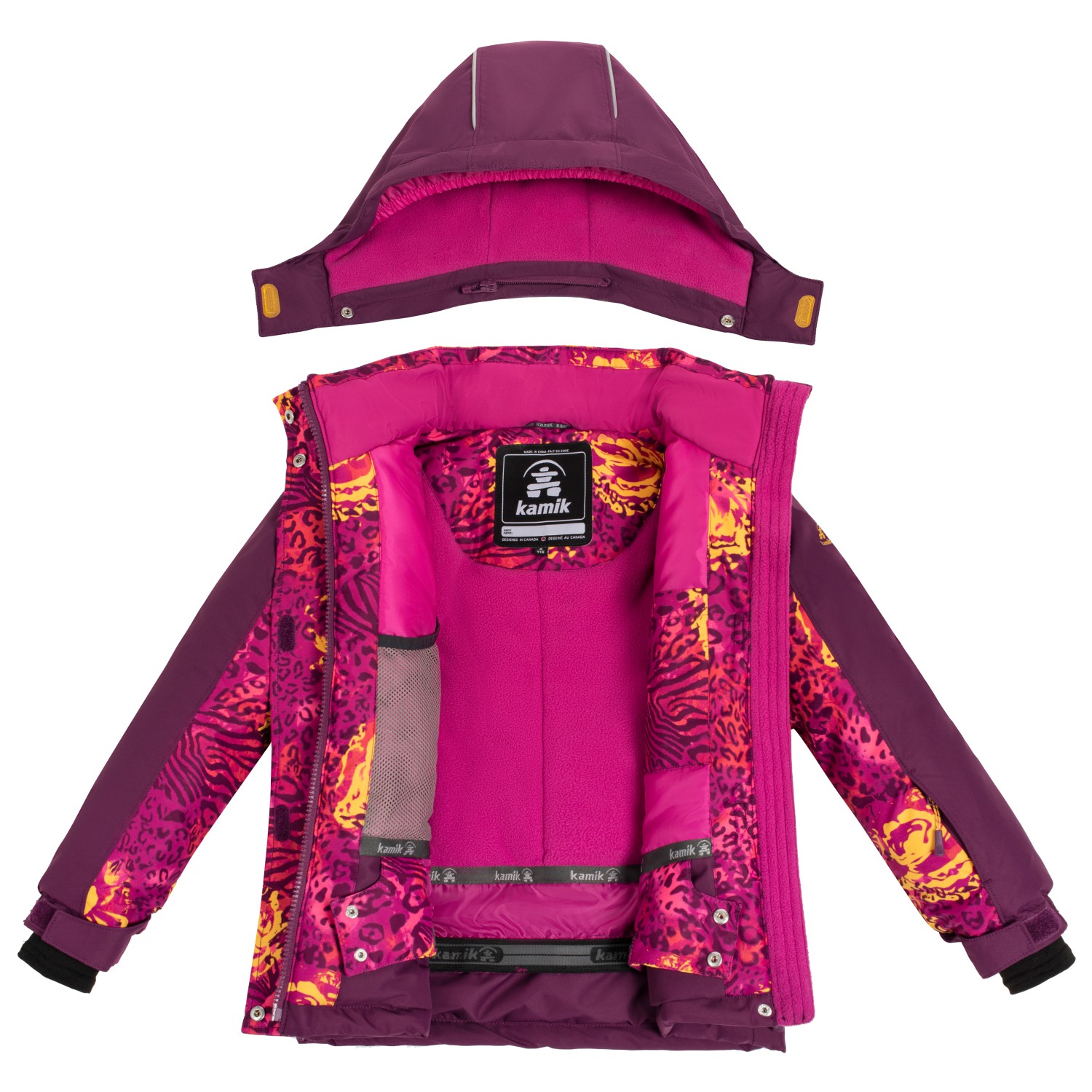 - tumhål, kardborrknäppning på ärmarna, reflekterande detaljer, snölås