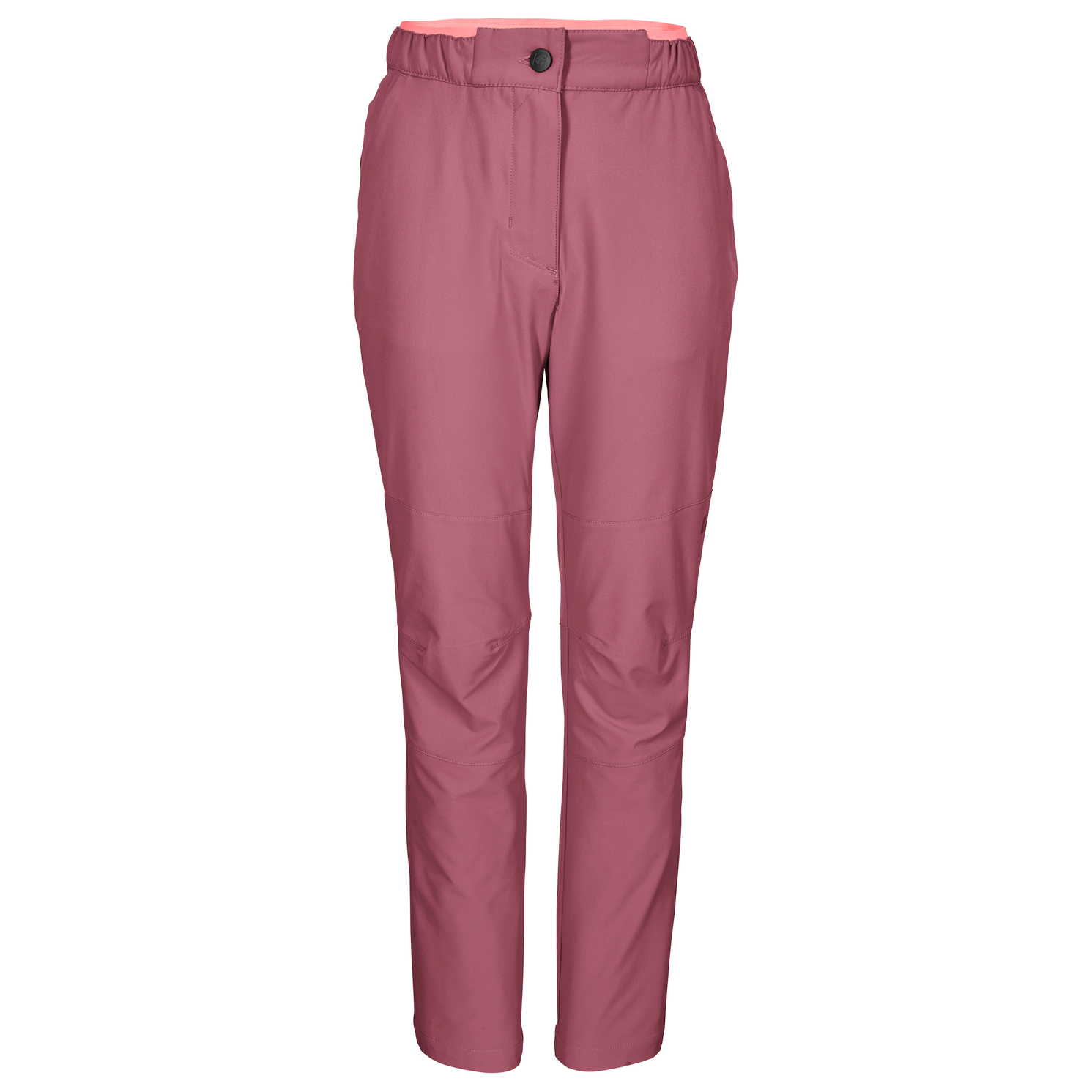 - elastisk linning, märke med logotyp, reglerbar midja, förformade knän, kilformade infällningar