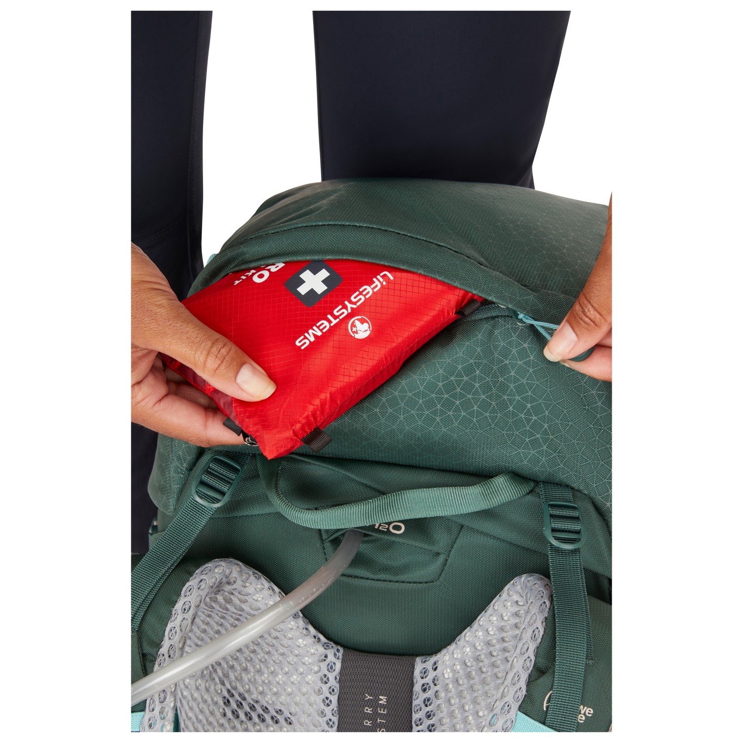 - aluminiumram, vadderade axelremmar, vadderat höftbälte, vadderad rygg, justerbar rygglängd