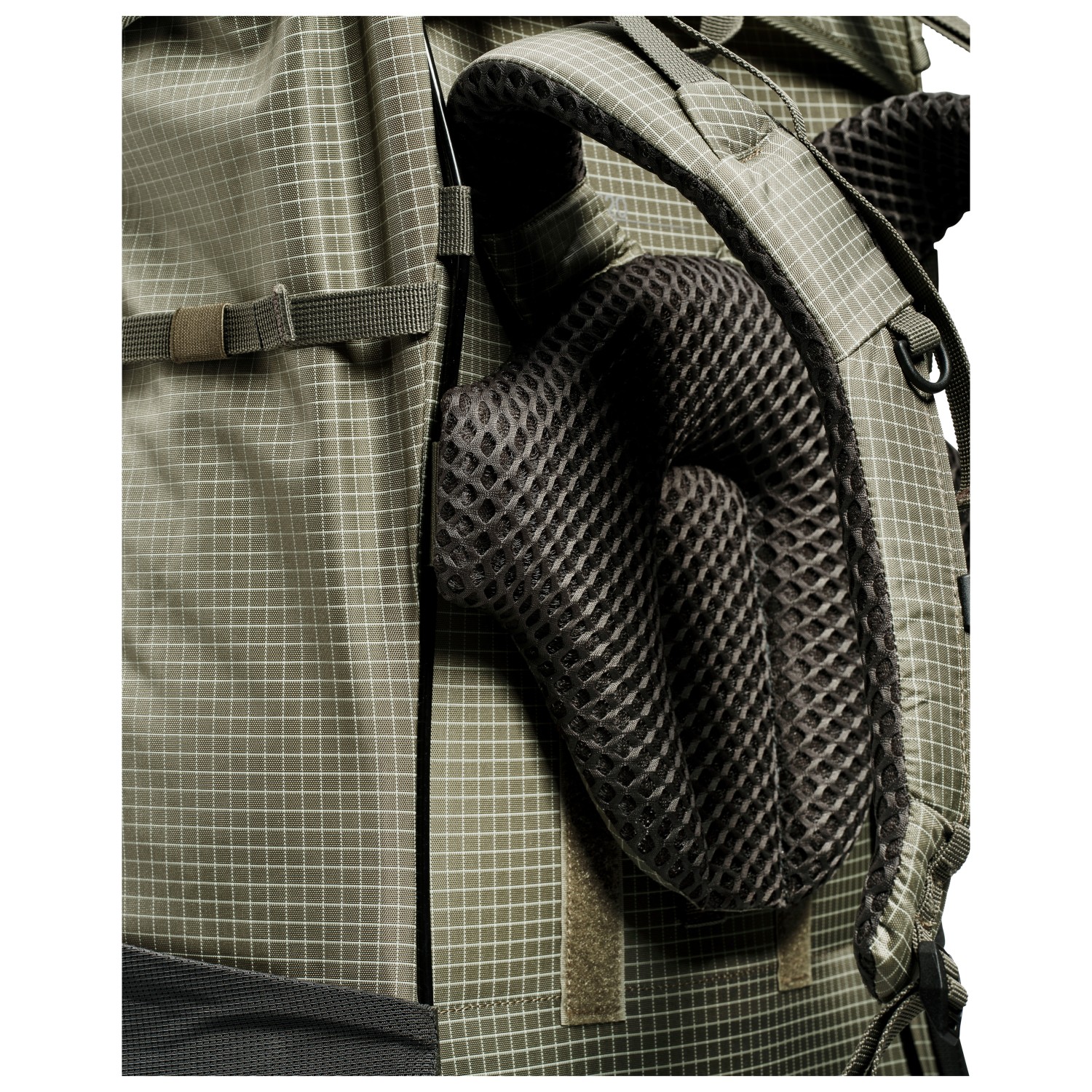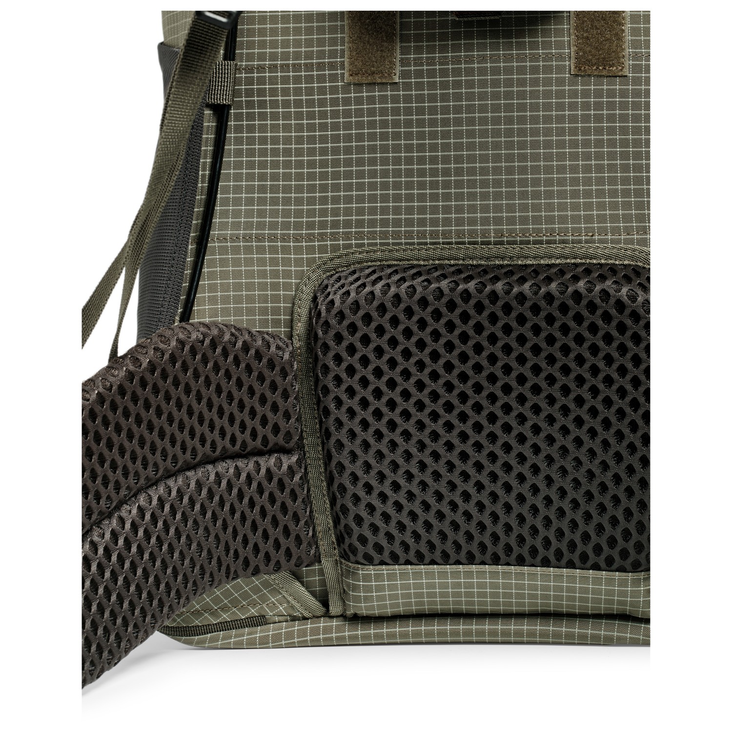 - 2 meshfack på sidan, daisy chain, fack med lock, innerficka med blixtlås, nyckelclip, stretchfack