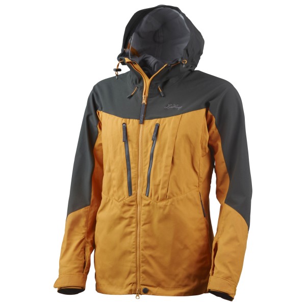 The core feature of the jacket is the waxed LPC material (Lundhags Polyester Cotton Mix) made from organic cotton and recycled polyester. It is particularly abrasion-resistant and water-repellent, and can withstand light drizzle. A waterproof, three-layer stretch fabric is used in particularly exposed areas such as the shoulders, back and hood.