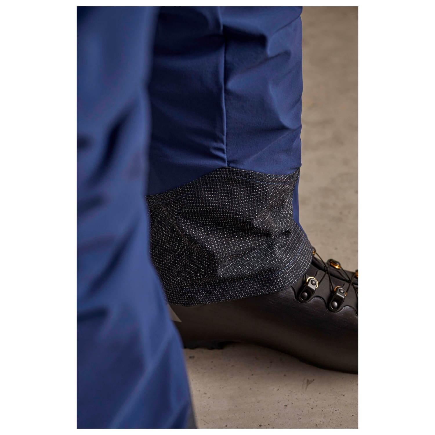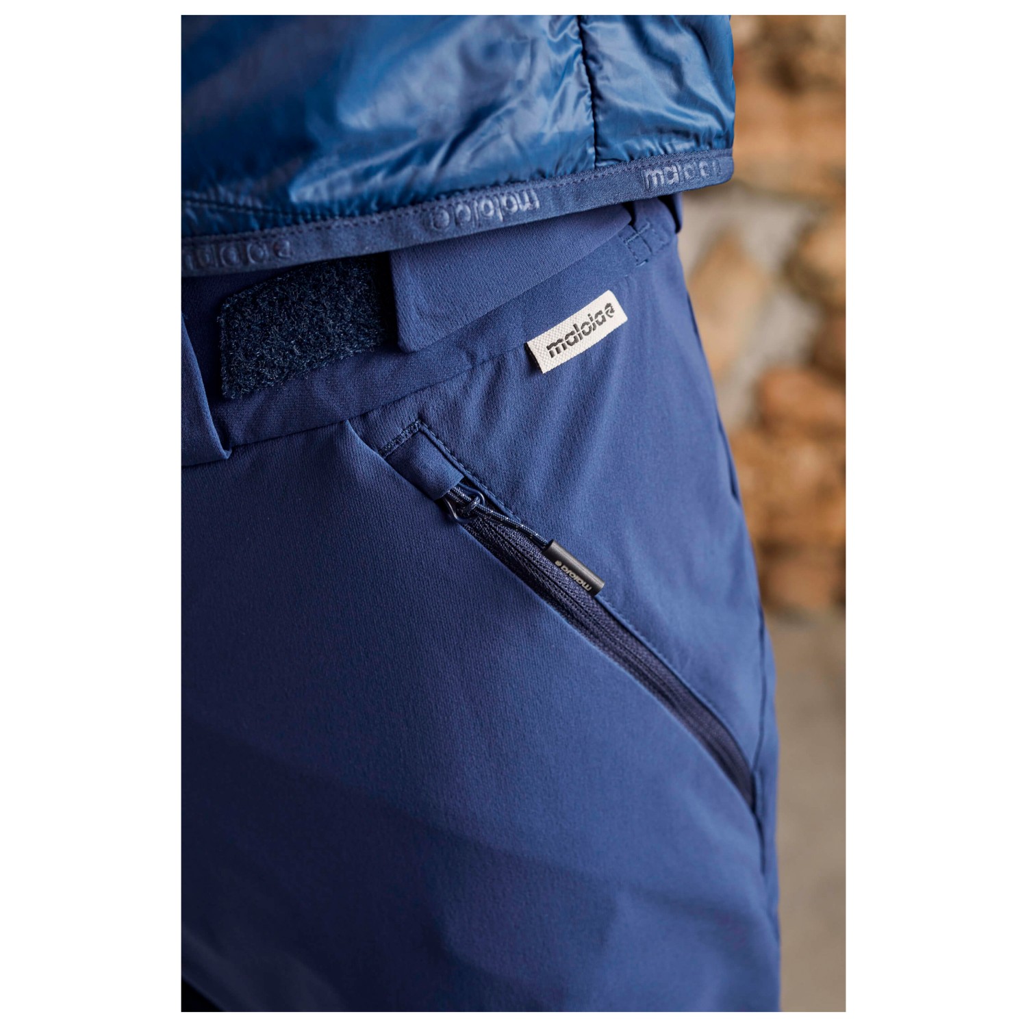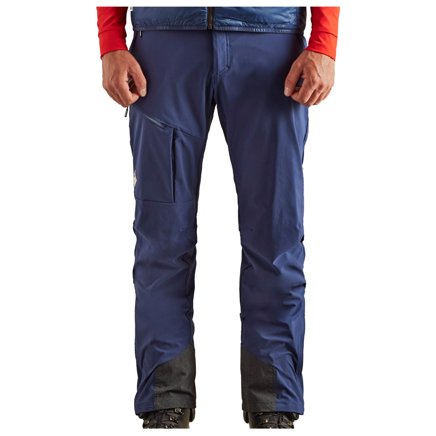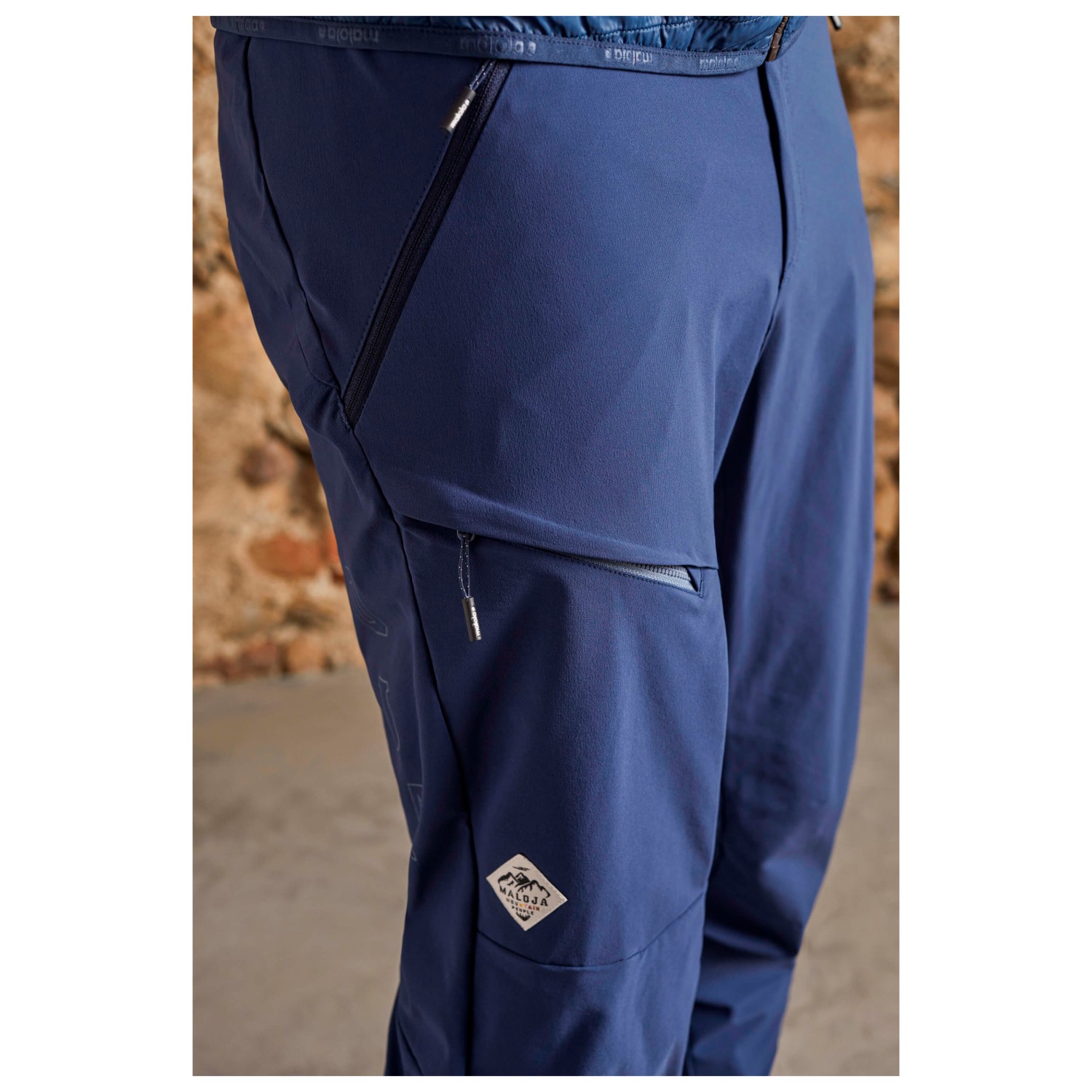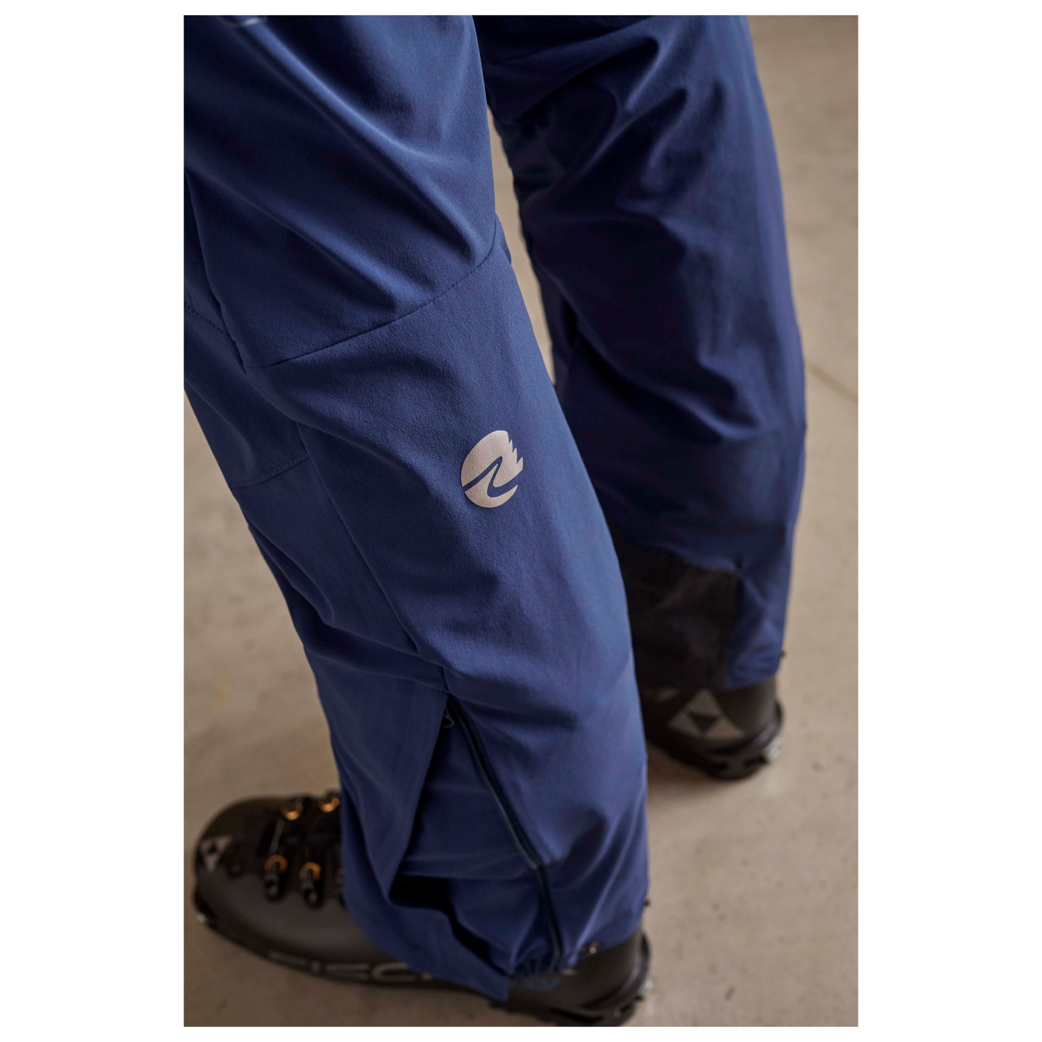 - kantskydd, reflekterande detaljer, blixtlås i bensluten, reglerbar midja, förformade knän