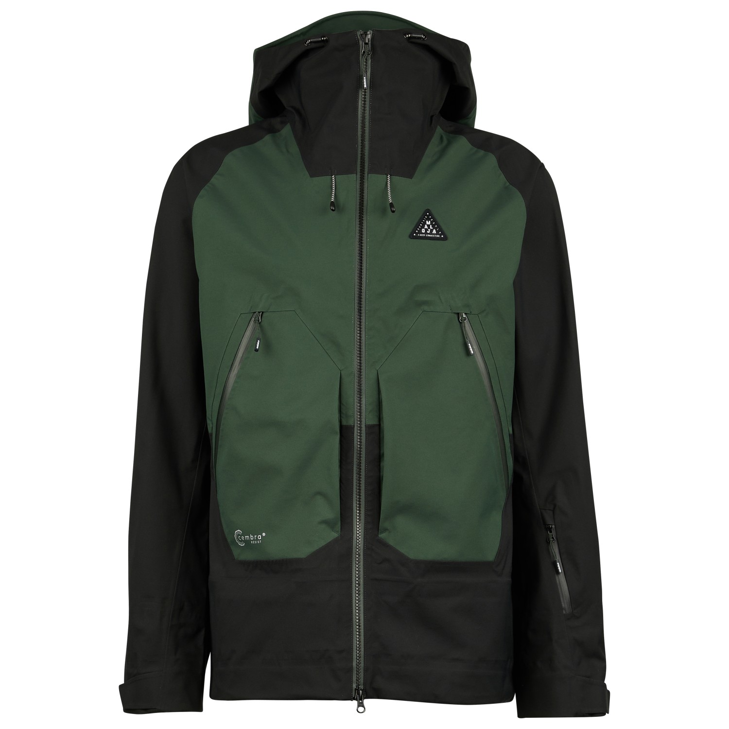 - avtagbart snölås, elastiska innermuddar, jack-byx-anslutningssystem, kardborrknäppning på ärmarna, dragsko i nederkant, vattenavvisande blixtlås