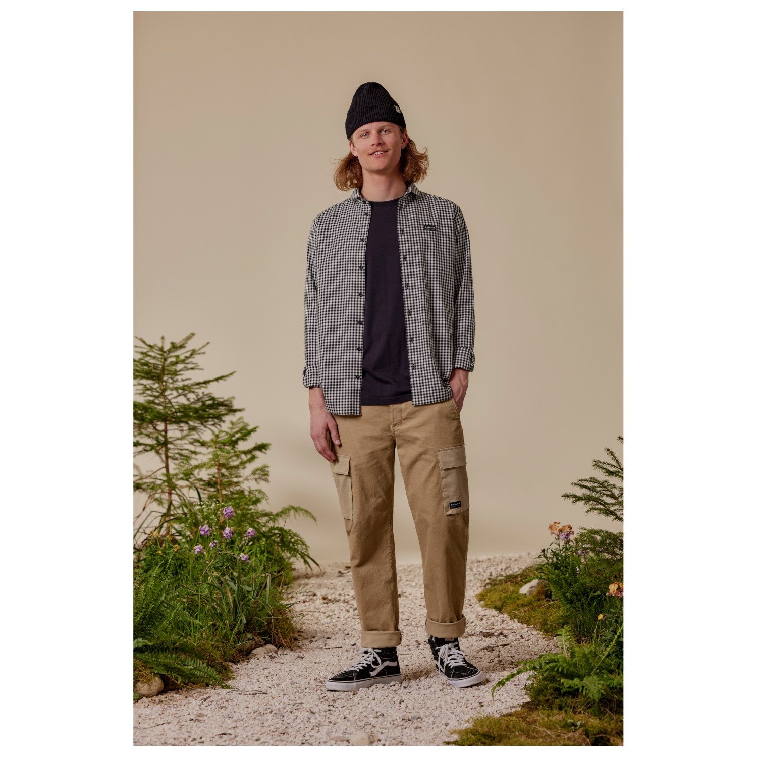 - märke med logotyp, ståkrage, reglerbara ärmmuddar