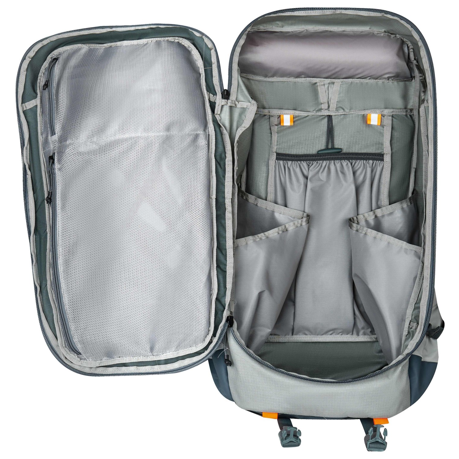 - invändiga nätfickor; utvändiga fickor, 2 autolock-kompressionsremmar på ramen