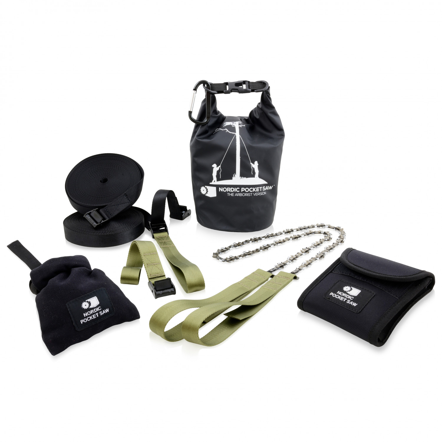 - Saw; weights; straps; stuff sack