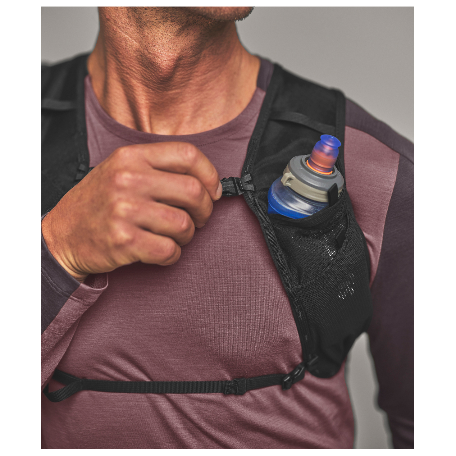 - fäste för trekkingstavar, flaskhållare, framficka med blixtlås