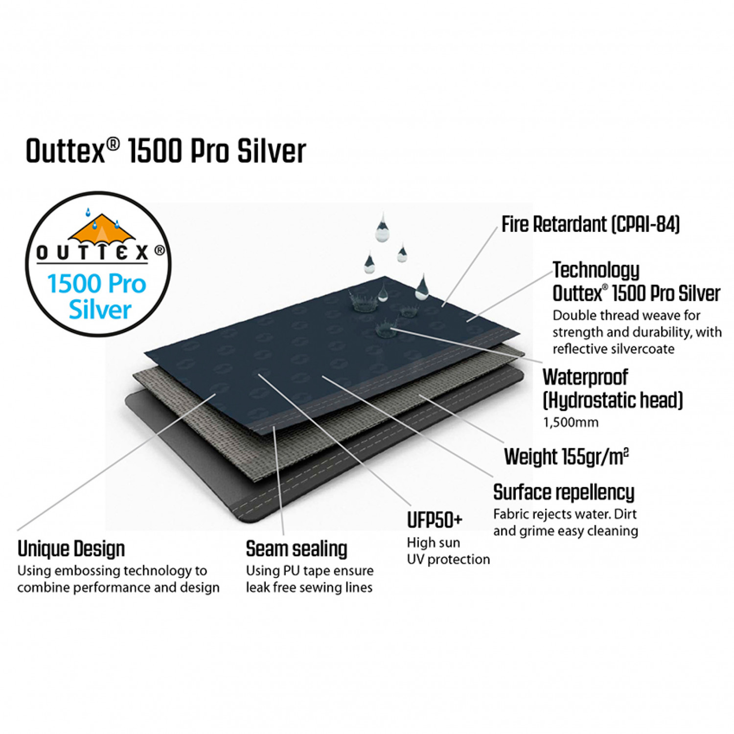 - tejpade sömmar, med PU-beläggning