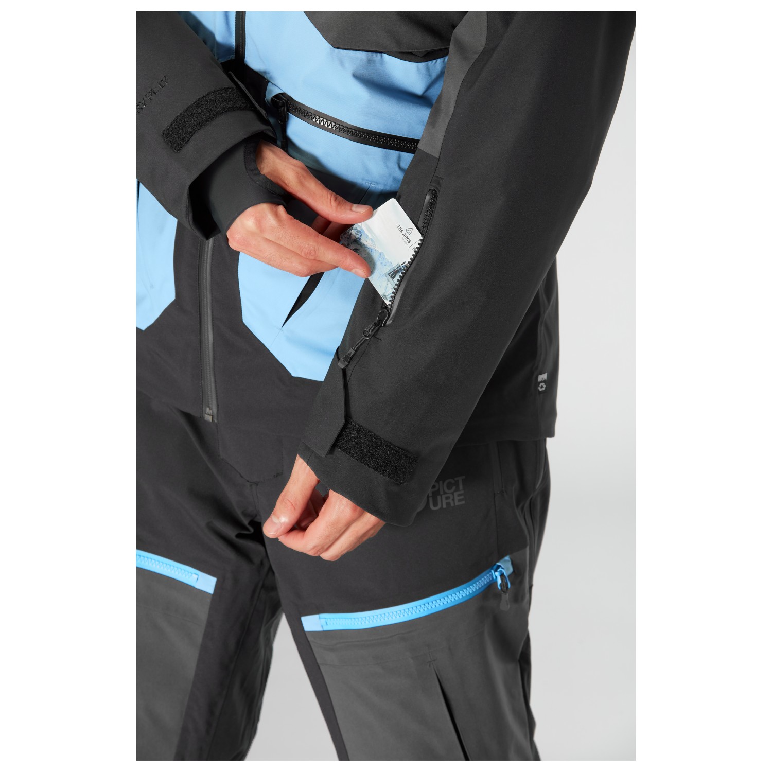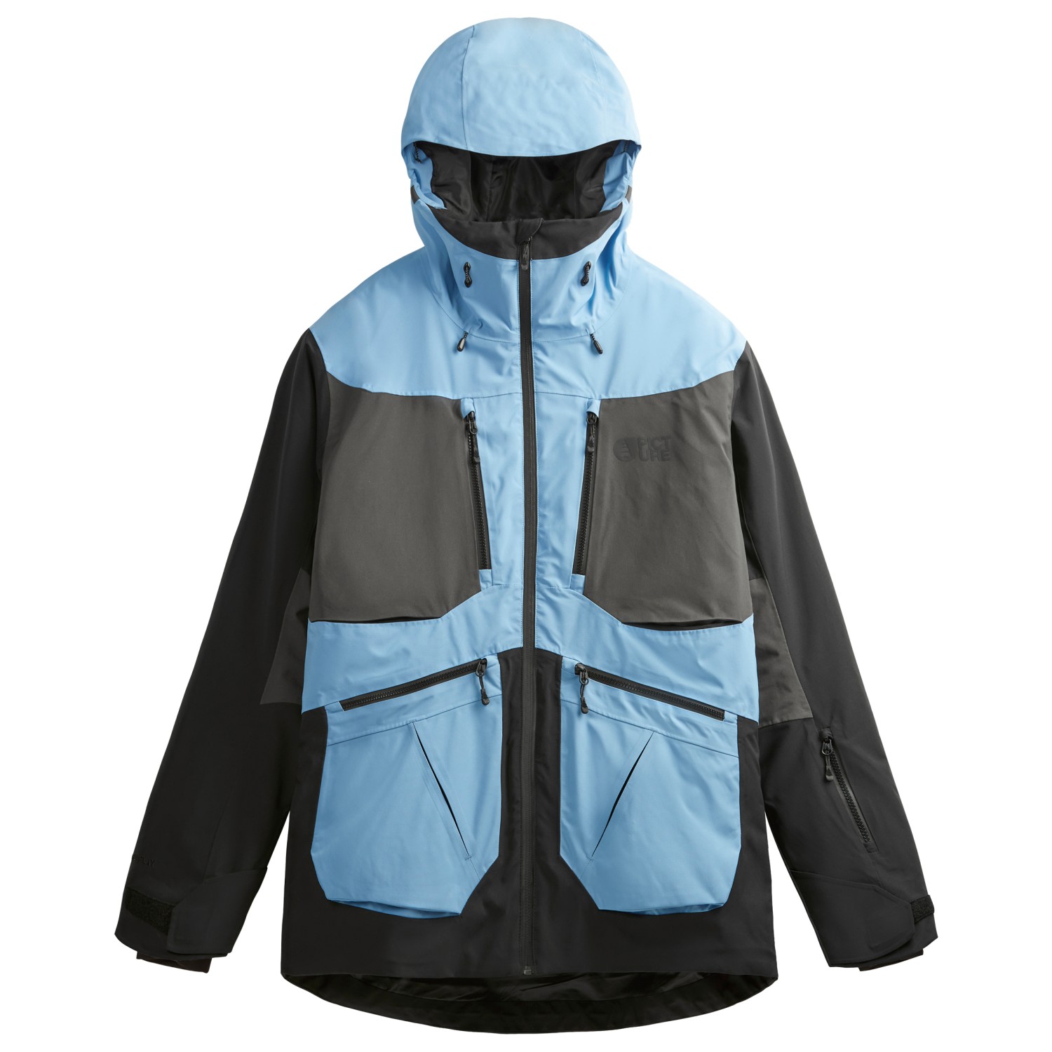 - 1 nätinnerficka, liftkortsficka, 2 framfickor med blixtlås, 2 bröstfickor med blixtlås