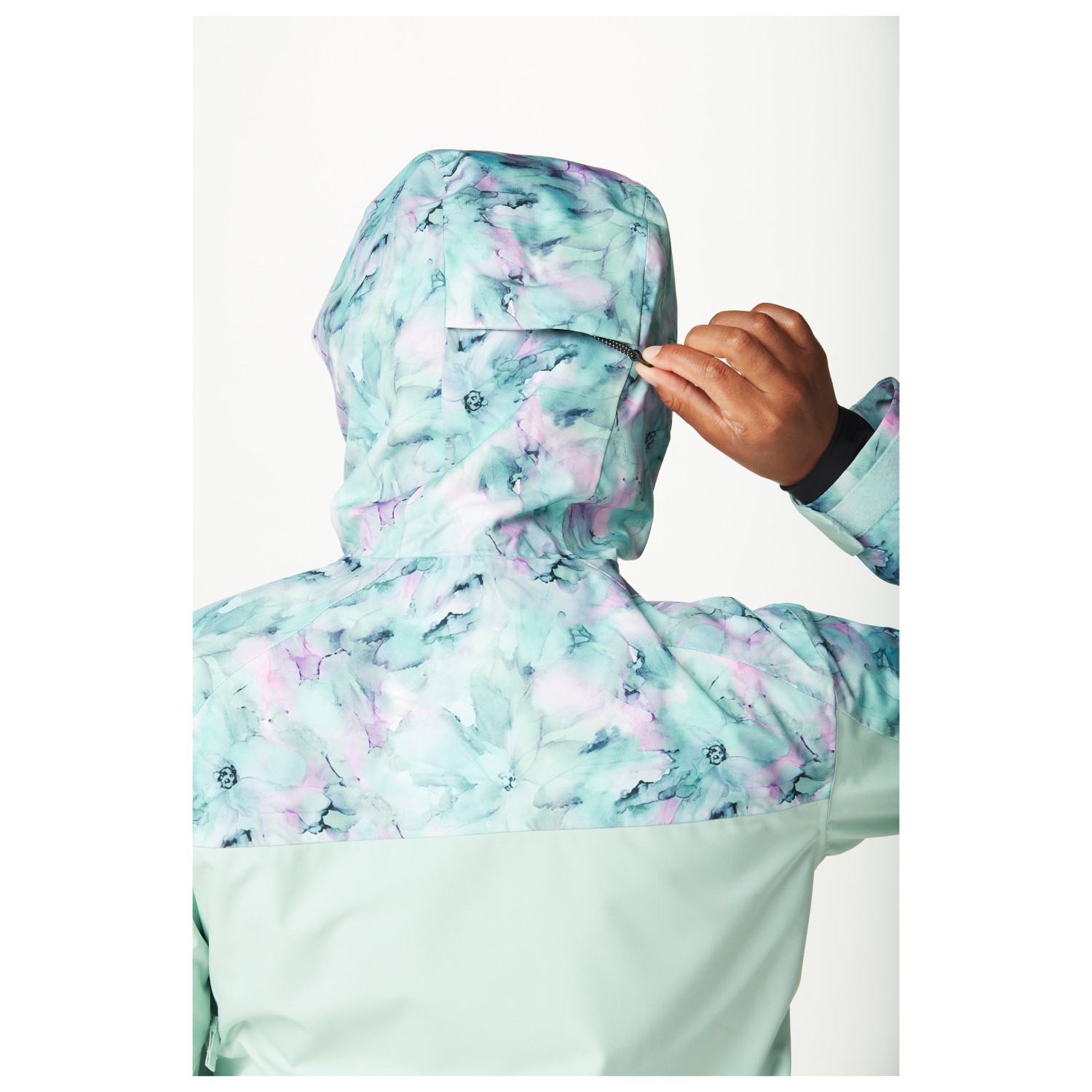 - snölås, dragsko i nederkant, kardborrknäppning på ärmarna, elastiska innermuddar, vattenavvisande blixtlås