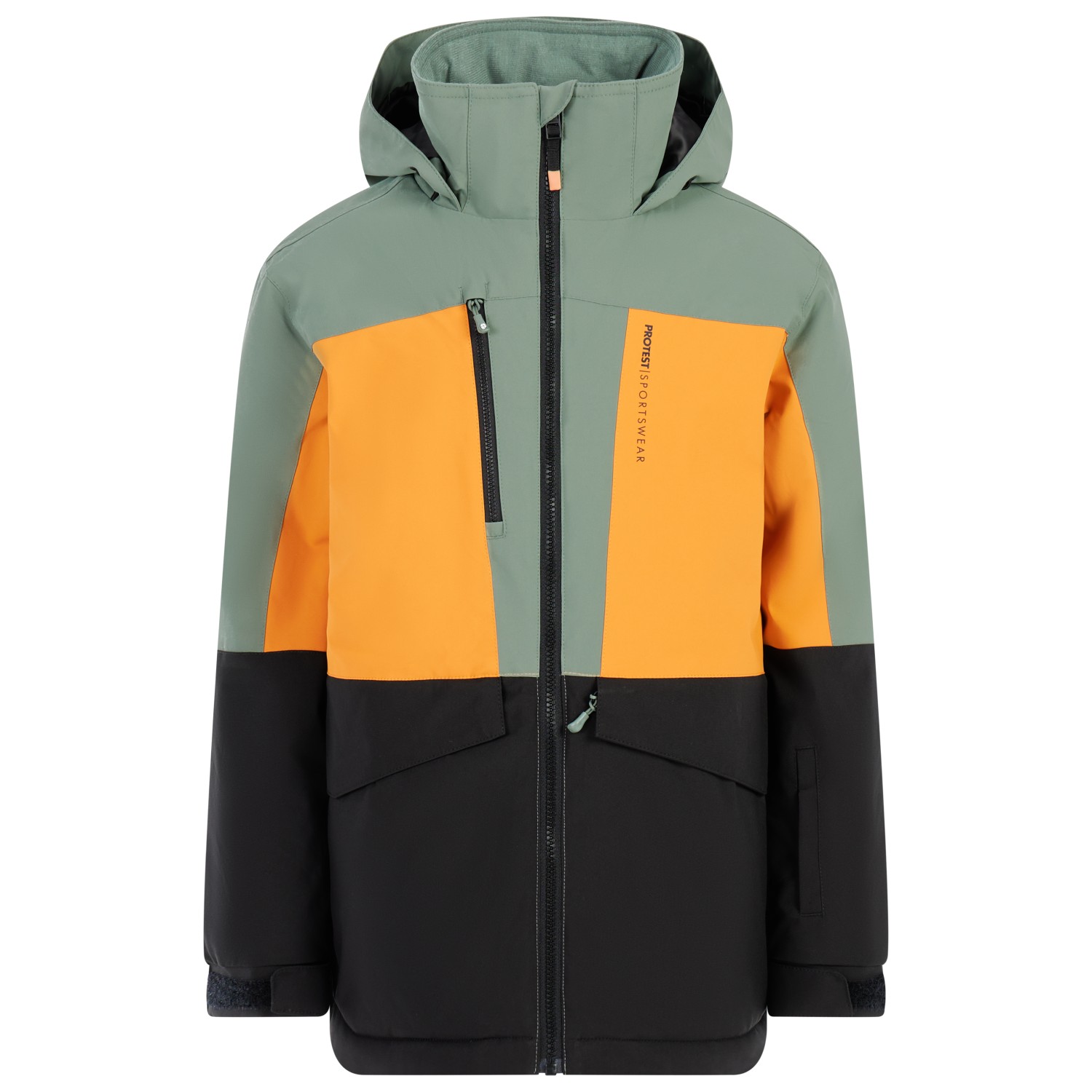 - 1 innerficka, 1 bröstficka med blixtlås, 2 sidofickor med blixtlås, liftkortsficka