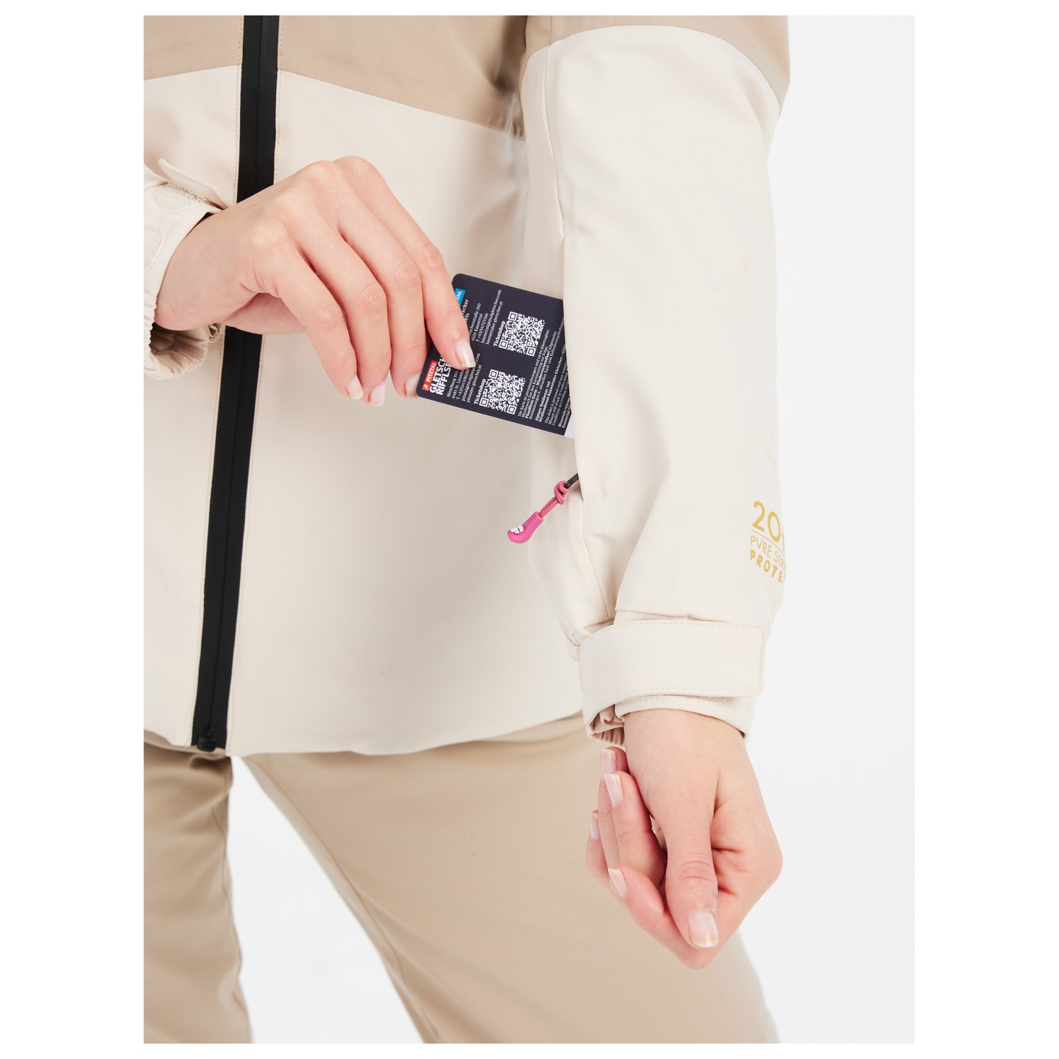 - 1 bröstficka med blixtlås, 2 framfickor med blixtlås, glasögonficka, liftkortsficka