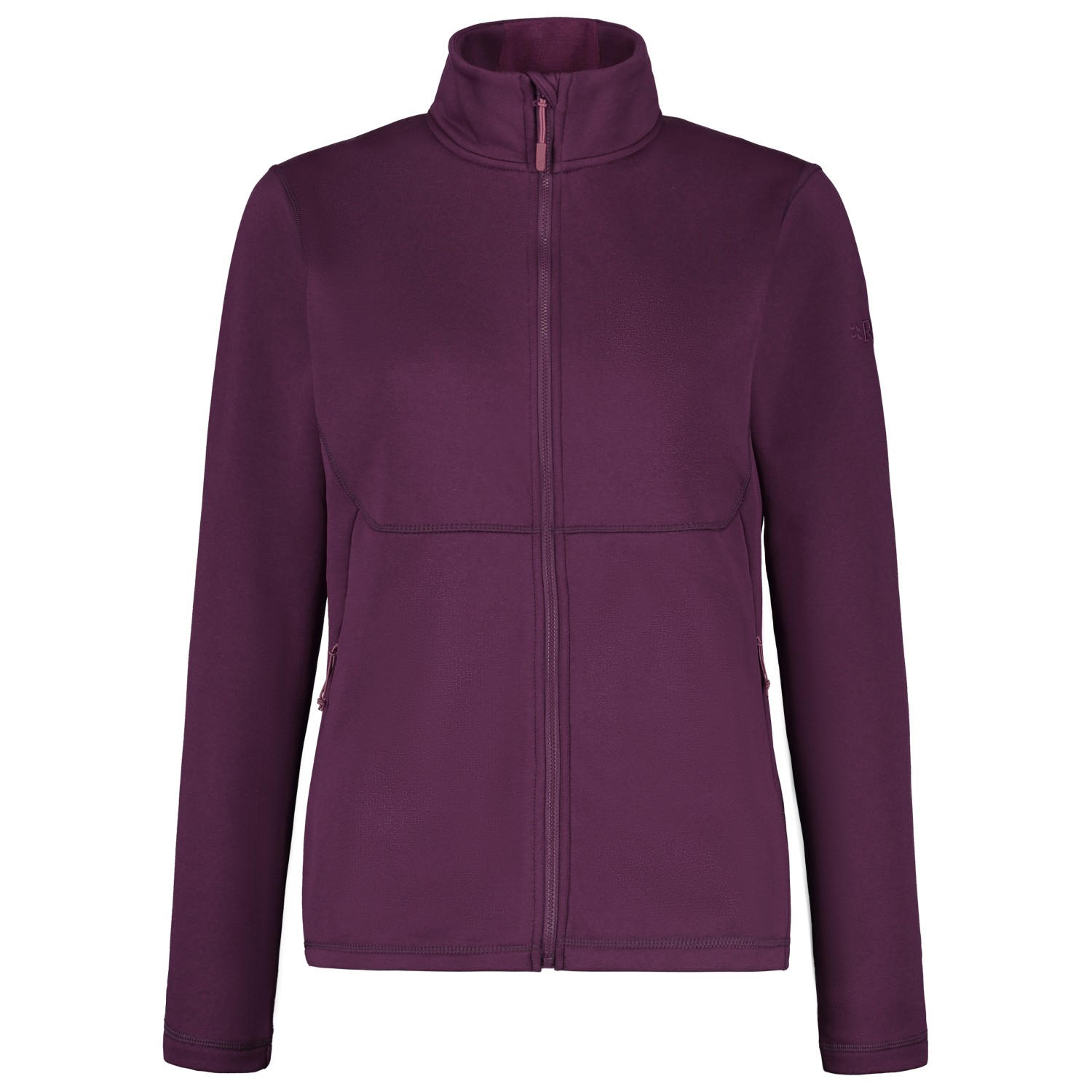 The jacket is comfortable and easy to wear over a base layer or under a hardshell jacket. The stretch content in the fabric moves with you, while the flat seams prevent pressure points under a backpack. The high-closing collar provides additional protection against the cold, and the full-length front zip allows for quick ventilation when activity levels change.