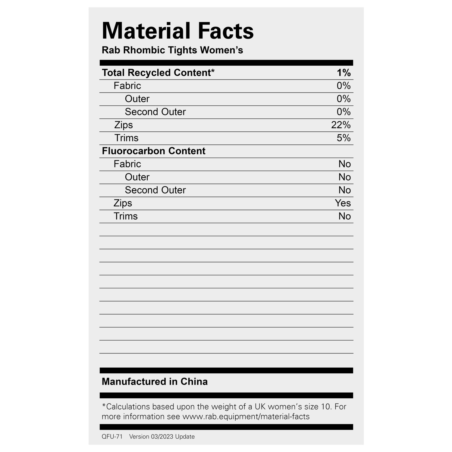- Övrig materialinfo: