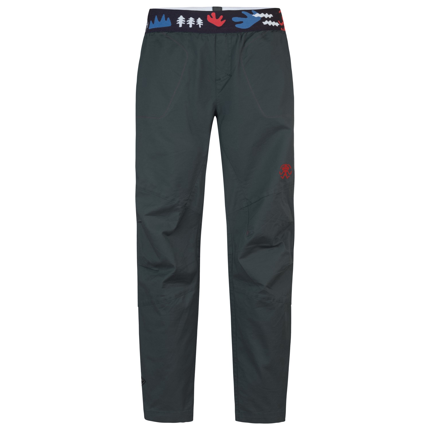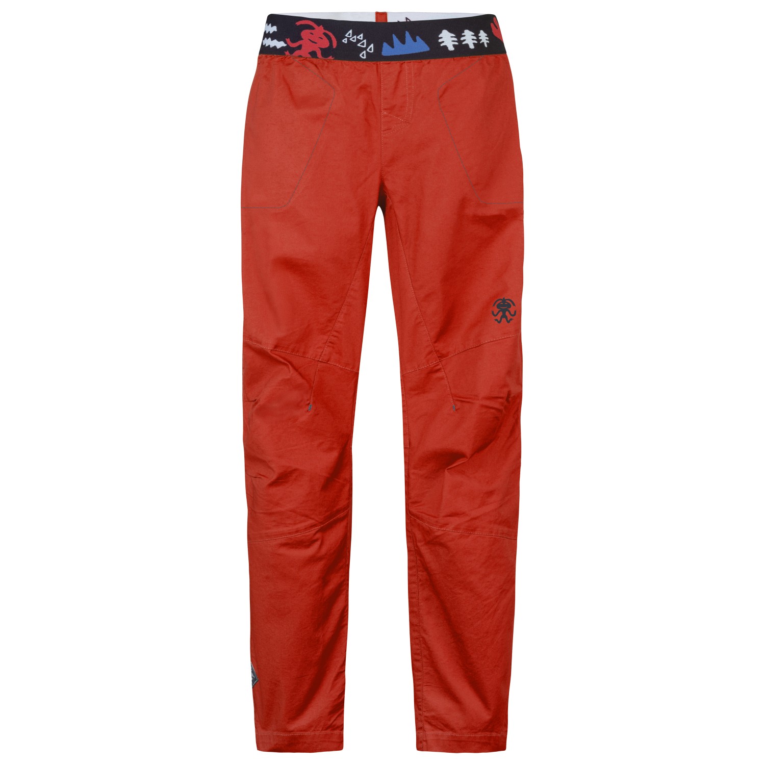 - elastisk linning, tryckt logotyp, förformade knän, kilformade infällningar