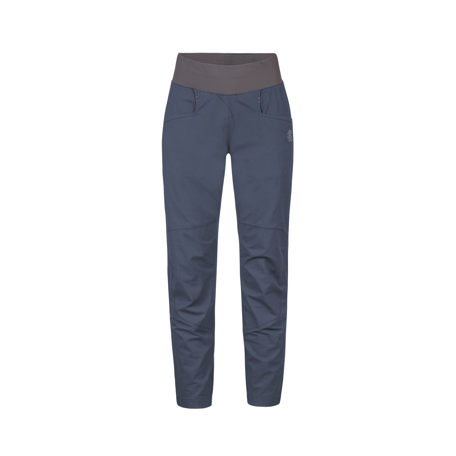- elastisk linning, märke med logotyp, tryckt logotyp, med dragsko, förformade knän, kilformade infällningar