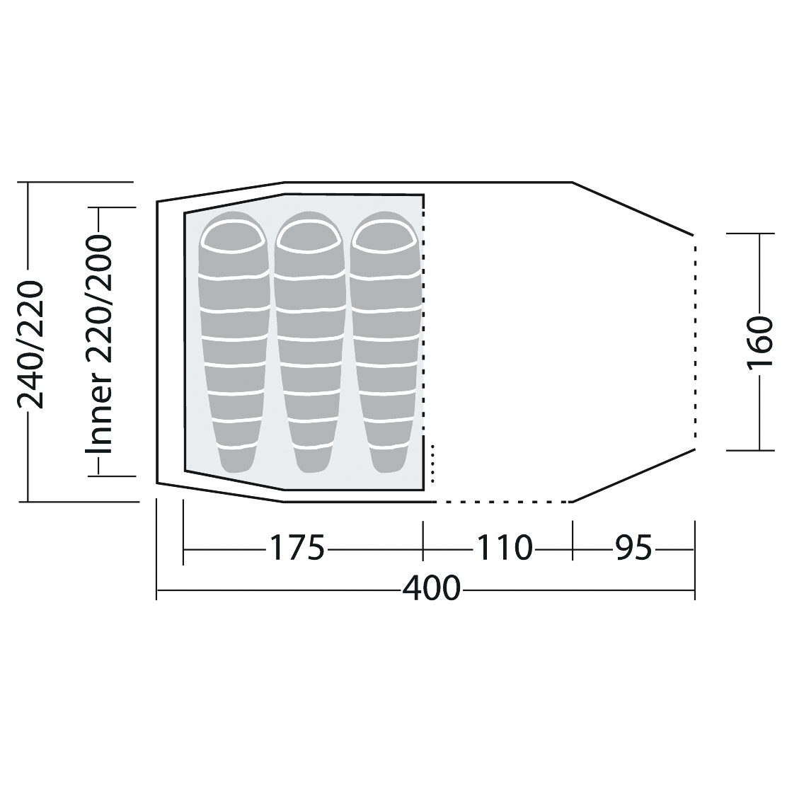 - 400 x 240 x 185 cm (L x B x H)