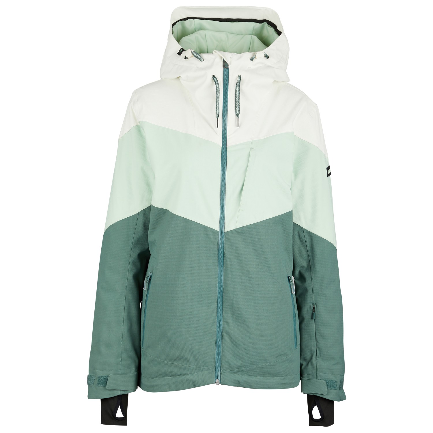 - 1 bröstficka med blixtlås, 2 framfickor med blixtlås, liftkortsficka