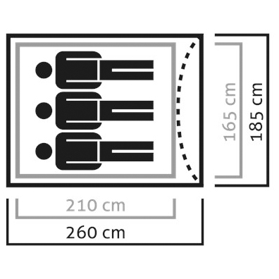 - 185 x 260 x 117 cm (W x L x H)