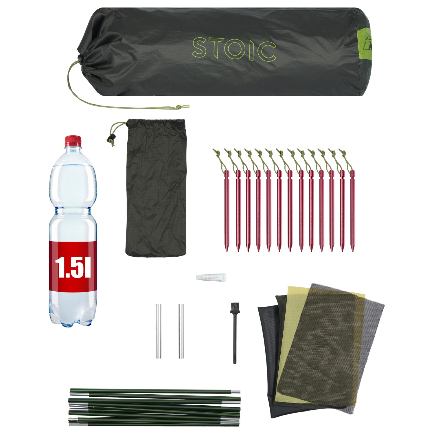 - inklusive: packpåse; tältlinor; 16 aluminiumpinnar (15 cm); reparationssats