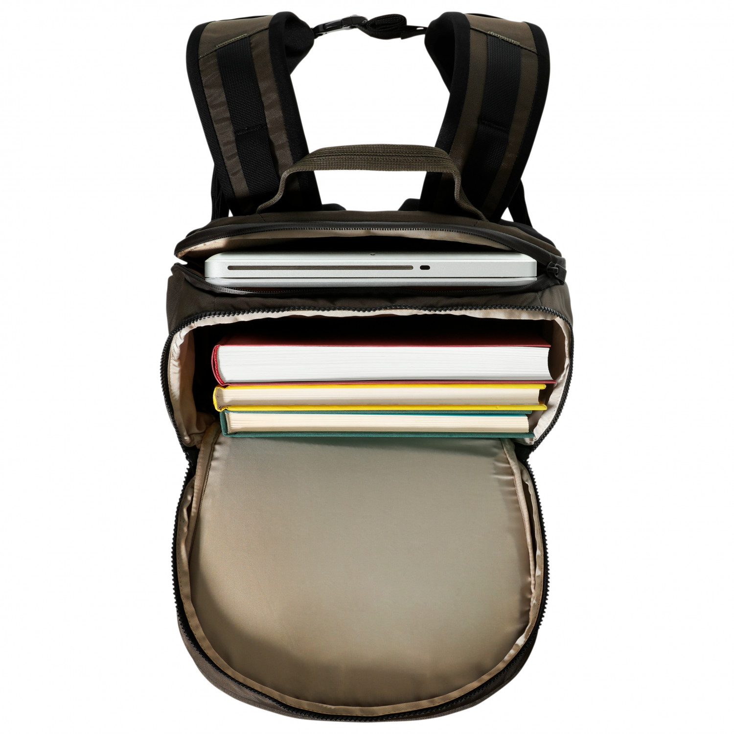 - 2 flaskhållare, fack med lock, fack fram, innerfack, internt förvaringsfack, laptopfack (15"), meshinnerfack