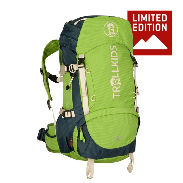 On the outside, additional pockets, a lid compartment, loops on the lid and a walking pole holder ensure quick access. For comfort and an optimal fit, the back length, sternum strap, shoulder straps and hip belt can be individually adjusted, all featuring soft padding. An integrated emergency whistle, reflective details, a rain cover and a name tag in the lid round off this child-friendly 30-litre backpack. All in all, the Kid’s Trolltunga Pack Exclusive from Trollkids is a children’s backpack for real adventures.