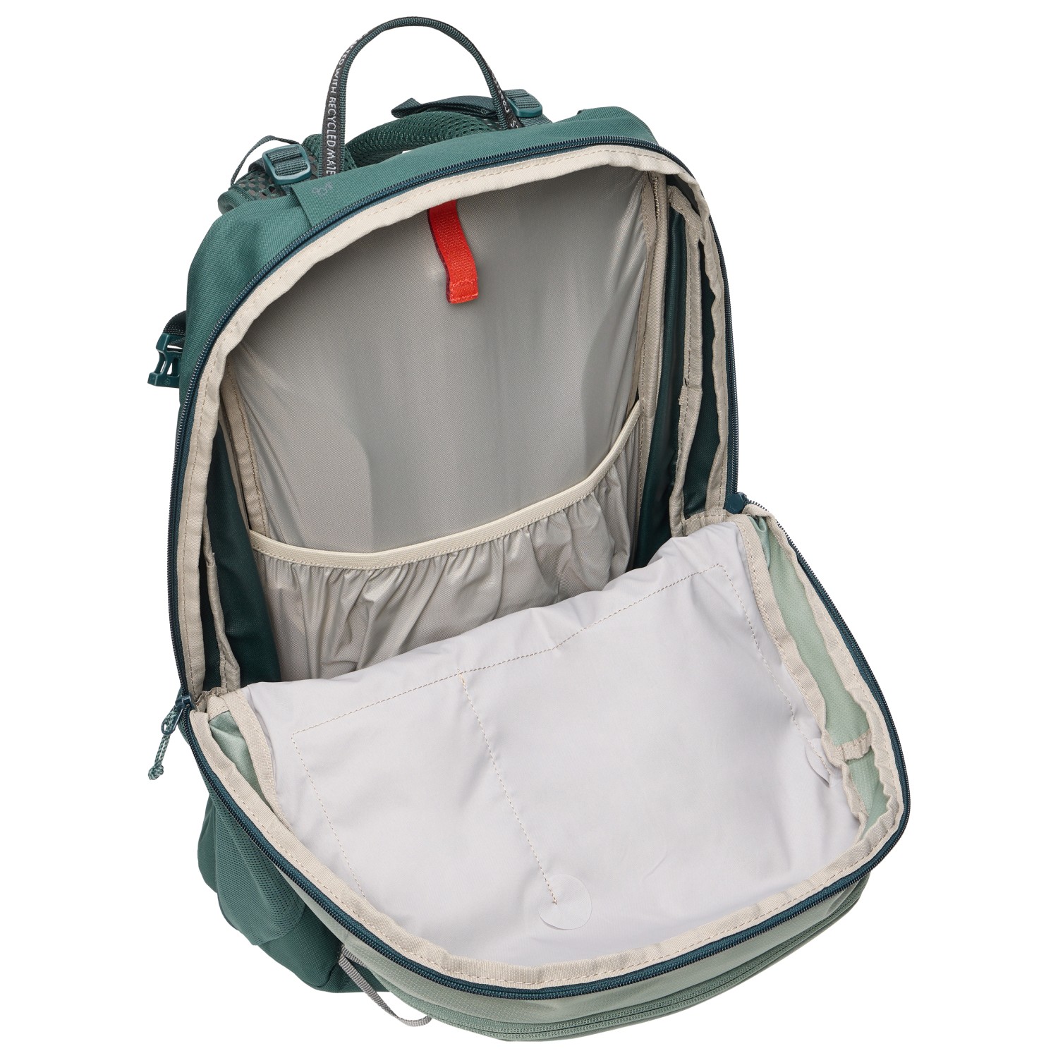 - innehåller återvunnen PET, innehåller återvunnen polyamid, innehåller återvunnen polyester