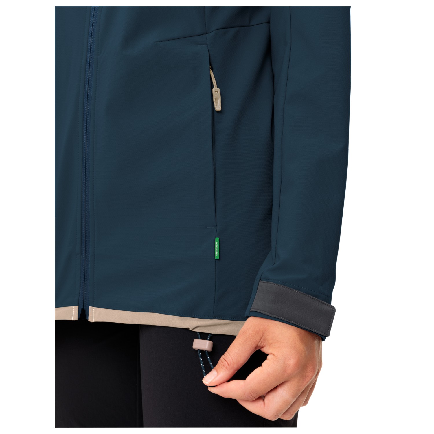 - elastiska ärmmuddar, kardborrknäppning på ärmarna, förformade ärmar