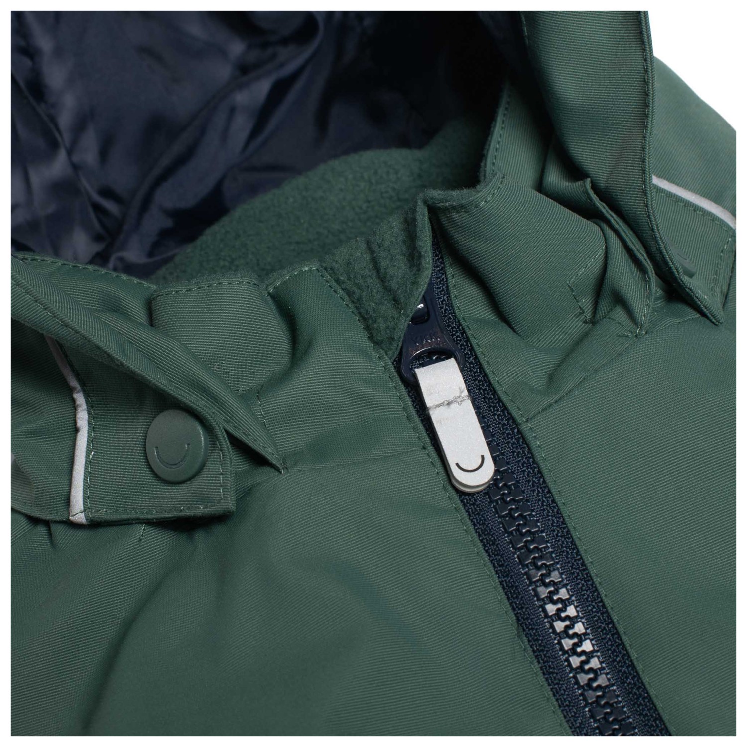 - genomgående blixtlås fram, med hakskydd